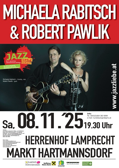 Michaela Rabitsch – Sängerin, Komponistin und Österreichs einzige Top-Jazztrompeterin  – vom US-Magazin Jazzscene als „a modern day female Chet Baker“ bezeichnet – und ihr kongenialer Partner, der Gitarrist Robert Pawlik, präsentieren ein Programm, inspiriert durch ihre zahlreichen Tourneen durch Europa, Asien, Afrika und Amerika, mit Konzerten und Festivalauftritten in 52 Ländern und begeistern gleichermaßen Presse und Publikum mit ihrem Crossover-Repertoire von Jazz, Pop und Latin, gewürzt mit einer Prise World.